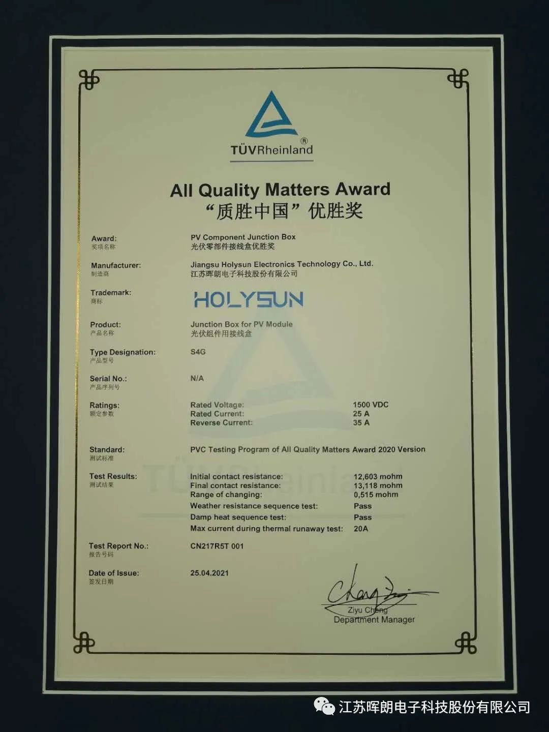 此次开云kaiyun官方在线入口科技研发团队面向大电流组件的最新市场需求的S4G开云kaiyun官方在线入口接线盒荣获2020年TÜV莱茵“质胜中国优胜奖”,这是对开云kaiyun官方在线入口科技产品研发和品质的高度肯定,未来开云kaiyun(中国)将继续立足高品质产品的研发和创新,助力开云kaiyun官方在线入口行业的降本增效和高质量发展。